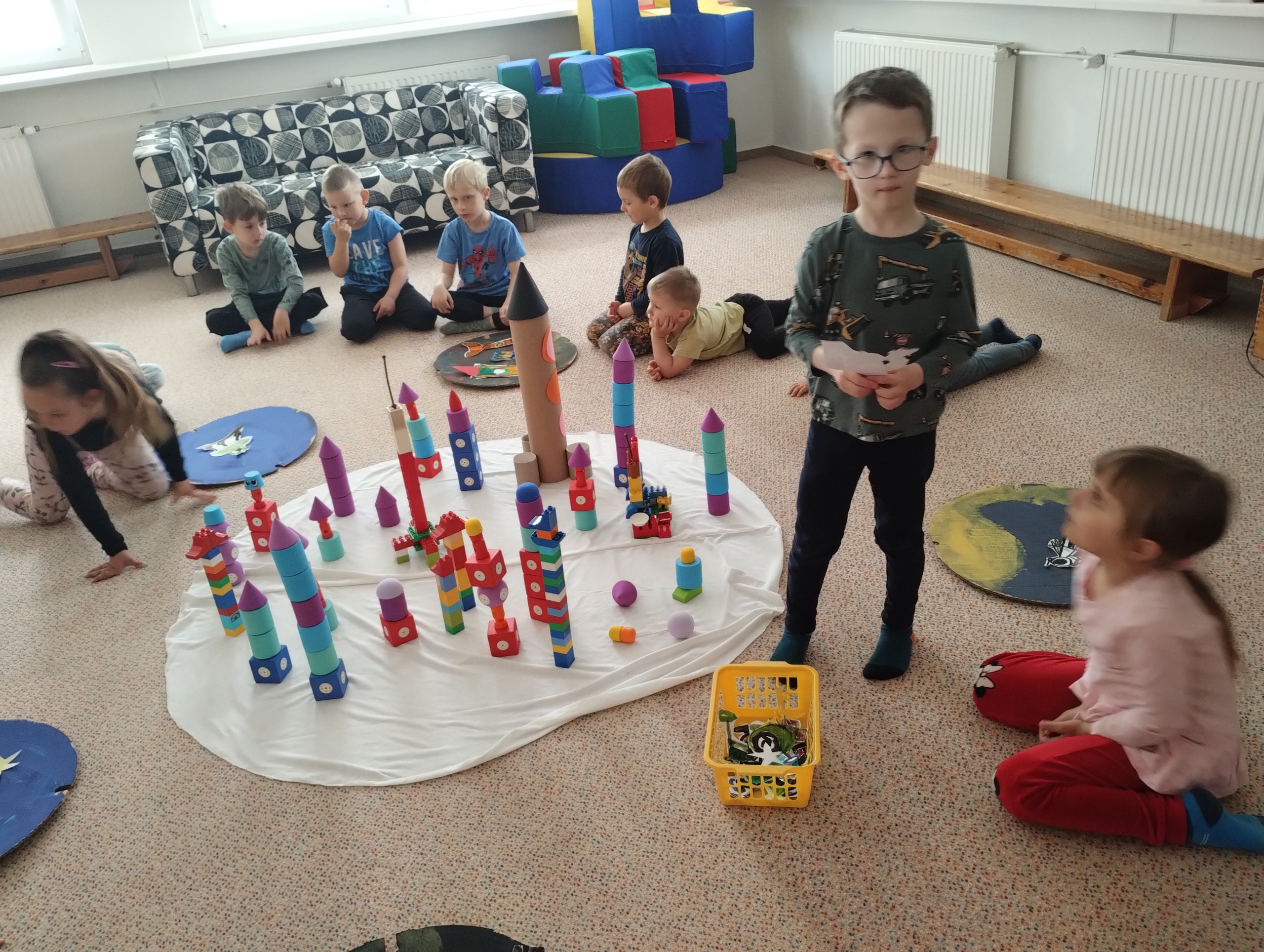 Cílem projektu ,,Cesta do vesmíru” bylo seznámit děti se Sluneční soustavou, planetami, Měsícem a hvězdami. Rozvíjeli jsme slovní zásobu, představivost, jemnou motoriku. Děti se dozvěděly spoustu zajímavostí např. , že kosmonaut =astronaut, nosí skafandr a helmu, slunce je žhavá hvězda,která je nejblíž k Zemi, ve vesmíru není vzduch, takže se tam nedá dýchat…..Projekt jsme zakončili návštěvou Planetária.